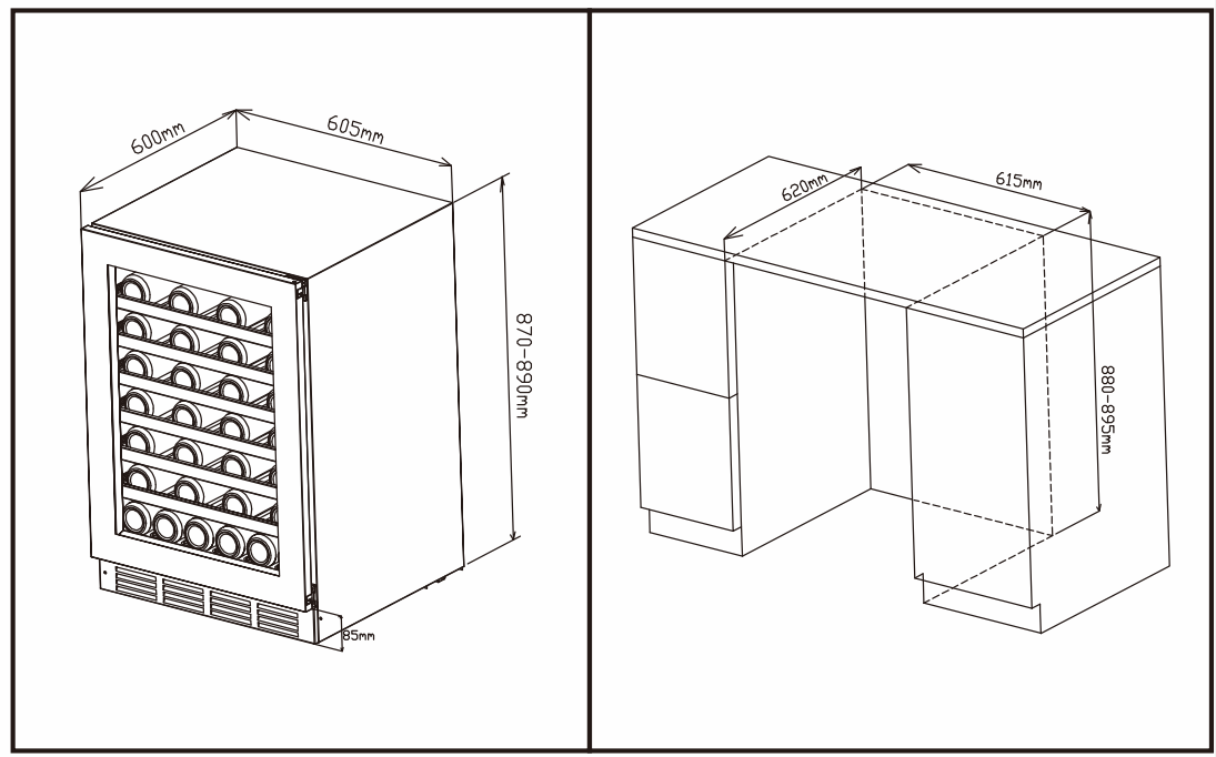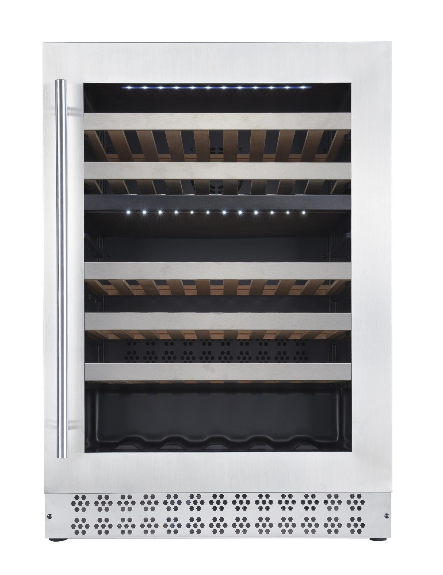 Отдельностоящий/встраиваемый под столешницу винный холодильник; Две температурные зоны (5-20°C в каждой); Шкаф комплектуется 5 крепкими полками из массива бука; Ножки винного шкафа выкручиваются до 7 см, тем самым винный шкаф можно расположить под более высокой столешницей; Замок двери надёжно защищает содержимое; Цокольную решётку винного шкафа при необходимости можно снять или заменить на другую, в тон всей кухни; Реверсивная дверь, которая позволяет устанавливать два винных шкафа рядом; Чёрный корпус, стальная бесшовная рама и ручка; Винный холодильник MC Wine W60DS стабильно держит заданную температуру при любых внешних условиях; Даже при закрытой дверце шкафа вы можете видеть каждую бутылку; Можно переключить отображение температуры с Цельсия на Фаренгейт; Длина шнура питания с заземлением - 2 метра.