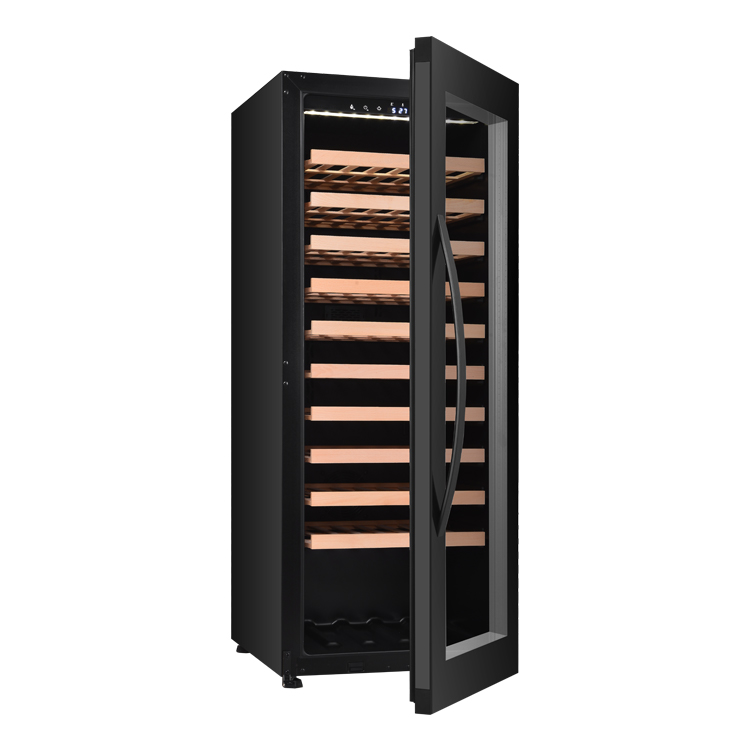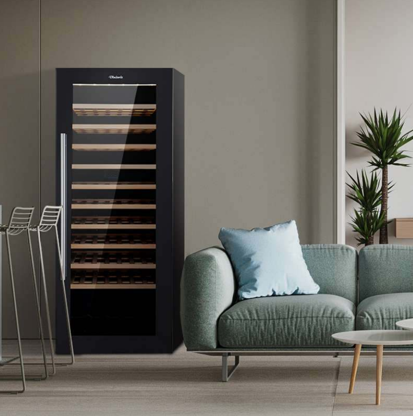 До 85 бутылок внутри (типа Бордо); Длительный срок хранения вина; Подготовка напитков непосредственно к подаче; Отдельностоящий винный шкаф (можно устанавливать в открытую нишу с зазором 2-5 см с каждой стороны Стекло двери, не пропускающее солнечные лучи. УФ-тонировка позволяет надёжно хранить вино, не теряя его вкуса; Элегантность – деревянные полки и мягкая светодиодная подсветка.Характеристики винного шкафа MC W85B: