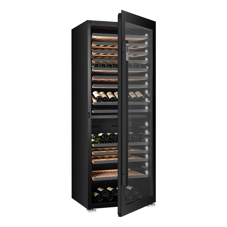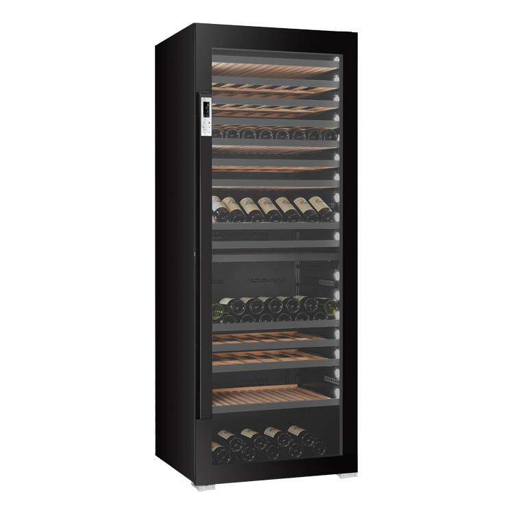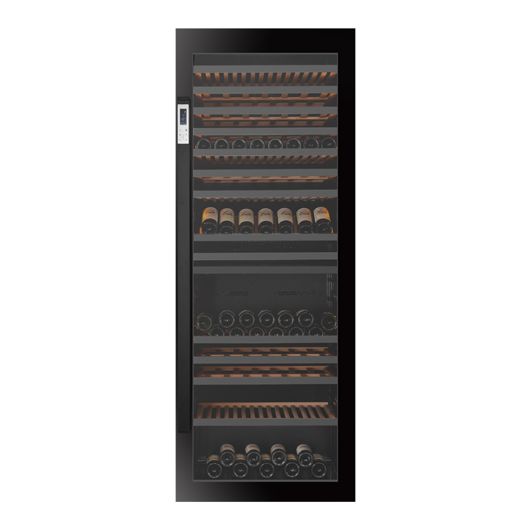 Удобная сенсорная панель управления и циферблат, расположенные на ручке двери винного шкафа По запросу может комплектоваться функцией дистанционного управления WI-FI; Светодиодный индикатор температуры;Можно хранить различные виды вин, в том числе шампанское;