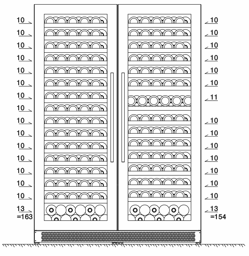 Можно хранить различные виды вин, в том числе шампанские;