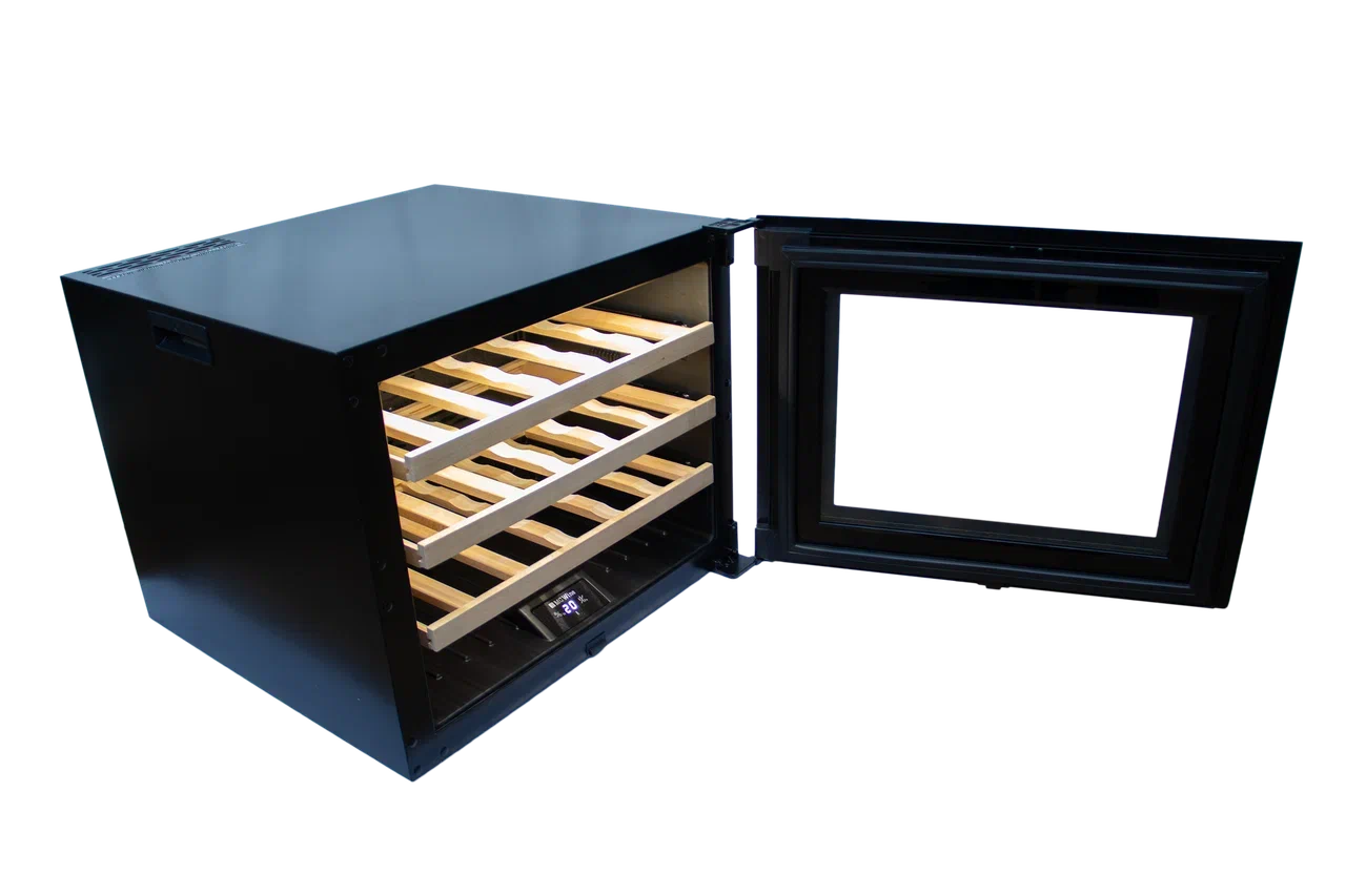Встраиваемый в колонну винный холодильник; Одна температурная зона (5-20°C); Шкаф комплектуется 3 крепкими полками из массива бука; Реверсивная дверь, которая позволяет устанавливать два винных шкафа рядом; Полностью чёрный корпус; Винный холодильник MC Wine W24B стабильно держит заданную температуру при любых внешних условиях; Даже при закрытой дверце шкафа вы можете видеть каждую бутылку; Полки рассчитаны и на поперечное расположение нестандартных бутылок; Можно переключить отображение температуры с Цельсия на Фаренгейт; Длина шнура питания с заземлением - 2 метра.Важно!