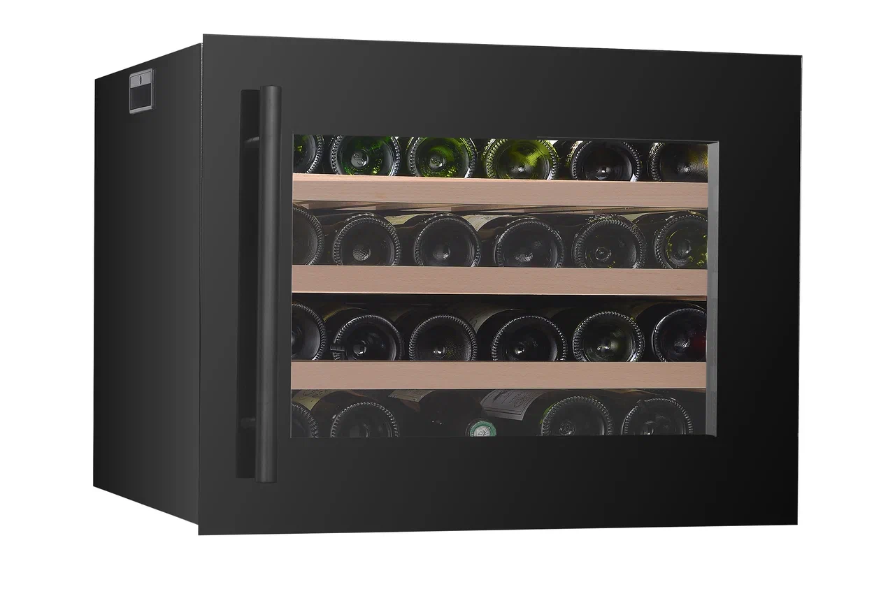Благодаря стеклянной двери с УФ-тонировкой, гарантирующей защиту вин от солнечного света, можно изучать содержимое, не открывая шкаф. Полки из дерева обеспечивают безопасное размещение бутылок, а мягкая светодиодная подсветка придает шкафу элегантность.
